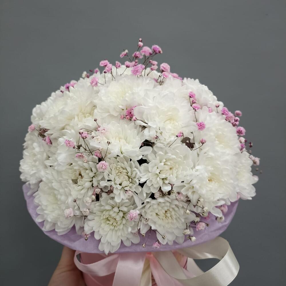 Миниатюрная композиция нежных хризантем и гипсофилы 💐