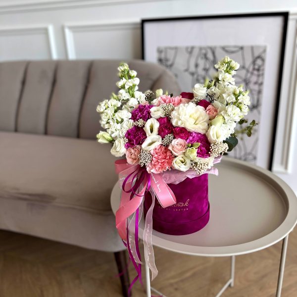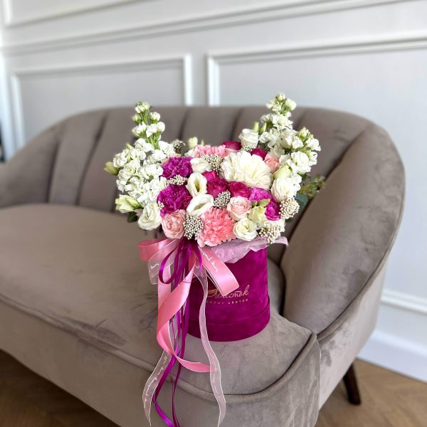 Бархатный цилиндр из диантусов и маттиолы в Нальчике
